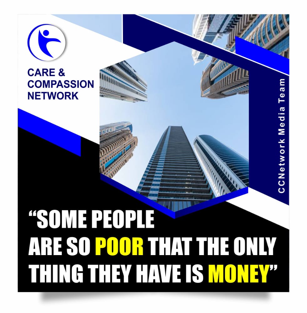 A friend once said: ‘Some people are so poor that the only thing they have is money.’ I thought deeply and connected that statement to real-life situations.